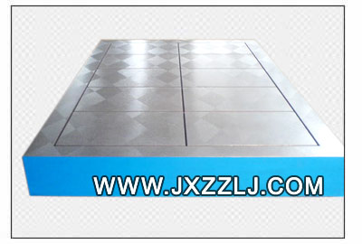 鑄鐵平板(鑄鐵平臺)的包裝:鐵板包裝和木制包裝兩種形式,平臺表表用塑料膜封裝,這種包裝適于平板內(nèi)陸運(yùn)輸,并有良好的防潮、防震、防銹和防野蠻裝卸等保護(hù)平板的措施,以確保安全運(yùn)抵現(xiàn)場。 鑄鐵平板(鑄鐵平臺)鑄鐵的運(yùn)輸:運(yùn)輸是保證平板不變形的一個重要環(huán)節(jié),所以運(yùn)輸平板時要保證不超載,不超速,不疲勞駕駛, 不在天氣惡劣的情況下運(yùn)輸。 鑄鐵平板(鑄鐵平臺)安裝: 鑄鐵平板(鑄鐵平臺)調(diào)試: 鑄鐵平板(鑄鐵平臺)工作環(huán)境: 鑄鐵平板(鑄鐵平臺)的使用注意事項:平板在使用時要先進(jìn)行安裝調(diào)試。然后,把平板的工作面擦拭干凈,在確認(rèn)沒有問題的情況下使用,使用過程中,要注意避免工件和平板的工作面有過激的碰撞,防止損壞平板的工作面;工件的重量更不可以超過平板的額定載荷,否則會造成工作質(zhì)量降低,還有可能損壞平板的結(jié)構(gòu),甚至?xí)斐善桨遄冃危怪畵p壞,無法使用。 平板在使用時要先進(jìn)行安裝調(diào)試。然后,把平板的工作面擦拭干凈,在確認(rèn)沒有問題的情況下使用,使用過程中,要注意避免工件和平板的工作面有過激的碰撞,防止損壞平板的工作面;工件的重量更不可以超過平板的額定載荷,否則會造成工作質(zhì)量降低,還有可能損壞平板的結(jié)構(gòu),甚至?xí)斐善桨遄冃危怪畵p壞,無法使用。 鑄鐵平板(鑄鐵平臺)的制造標(biāo)準(zhǔn):按JB/T7974-1999制造)簡要描述 下載PDF文檔 鑄鐵平板(鑄鐵平臺)的質(zhì)量檢測: 1、鑄鐵平板(鑄鐵平臺)工作表面不應(yīng)有銹跡、劃痕、碰傷及其他影響使用的外觀缺陷。2、鑄鐵平板(鑄鐵平臺)工作表面不應(yīng)有砂孔、氣孔、裂紋、夾渣及縮松等鑄造缺陷。各種鑄造表面應(yīng)清除型砂、且表面平整,涂漆牢固。各棱邊應(yīng)修鈍。在精度等級低于“00”級的平板工作面上,對于直徑小于15mm的砂孔允許用相同的材料堵塞,其硬度應(yīng)低于周圍材料的硬度。在工作面上堵塞的部位應(yīng)不多于四處,其相互之間的距離應(yīng)不小于80mm。 3、在鑄鐵平板(鑄鐵平臺)的相對兩個側(cè)面上,應(yīng)設(shè)置有安裝手柄、吊環(huán)等吊裝設(shè)施的螺紋孔或圓柱孔。設(shè)計吊裝位置時應(yīng)考慮盡量減少因吊裝而引起的變動。 4、根據(jù)用戶要求,在板工作面上設(shè)置螺紋孔或溝槽后,這些部位不應(yīng)出現(xiàn)高于工作面的凸起現(xiàn)象。 5、鑄鐵平板(鑄鐵平臺)應(yīng)采用優(yōu)質(zhì)細(xì)顆料的灰口鑄鐵或合金鑄鐵制造。 6、鑄鐵平板(鑄鐵平臺)工作面的硬度應(yīng)為HB 170-220。 7、鑄鐵平板(鑄鐵平臺)工作面應(yīng)采用刮削工藝,對于“3”級平板工作面也可以采用刨削工藝,刨削工作表面的表面粗糙度按輪廓算術(shù)平均偏差Ra值應(yīng)不大于5um 8、鑄鐵平板(鑄鐵平臺)應(yīng)經(jīng)過穩(wěn)定性處理和去磁。 鑄鐵平板(鑄鐵平臺)平 面 度:可分實驗室級(Reference)、校驗級(Master)、工 具室級(Working) 三級 鑄鐵平板(鑄鐵平臺)平面研磨:平臺在很早的時候,人們利用三塊平臺相互匹配以產(chǎn)生真平平面。一個熟練而 又有耐心的 磨石師傅可以不藉助任何量測儀器,而僅利用三平臺相互匹配的 方式,做多次90度之旋轉(zhuǎn), 即可產(chǎn)生令人難以相信的真平程度。 鑄鐵平板(鑄鐵平臺)平面度: 1.AA級:其平面度(μm)= 1+1.6D2 (D為平臺對角線長或直徑),用於高度精密 之測定之用, 常用於實驗室。 2. A級:其平面度為AA級之兩倍誤差,常用於工具檢驗室作精密量具之檢驗之用。 3. B級:其平面度為AA級之四倍誤差,常用於工具檢驗室或在現(xiàn)場檢驗量具或劃線之用。 鑄鐵平板(平臺)的分類: 按照用途分: 鑄鐵平板(平臺)可以分為:基礎(chǔ)平板、劃線平板、檢驗平板、鉚焊平板、焊接平板、火工平板、鉗工平板、研磨平板、刮痧平板、壓沙平板、試驗平板、機(jī)床工作臺(如:落地鏜床工作臺)、三座標(biāo)平板、模具墊板、拼裝平板(也叫裝配平板)。 或:基礎(chǔ)平臺、劃線平臺、檢驗平臺、鉚焊平臺、焊接平臺、火工平臺、鉗工平臺、研磨平臺、刮痧平臺、壓沙平臺、試驗工作臺(如:振動試驗工作臺簡稱振動試驗臺)、機(jī)床工作臺(如:落地鏜床工作臺)、三座標(biāo)平臺、模具工作臺、拼裝平臺(也叫裝配平臺)。 按照形狀分類:普通平板(普通平臺)、圓形平板(也叫圓平板/圓平臺/圓形平臺)、方平板(方平臺) 按照表面工藝可以分為:平面平板和T型槽平板(T型槽平臺)